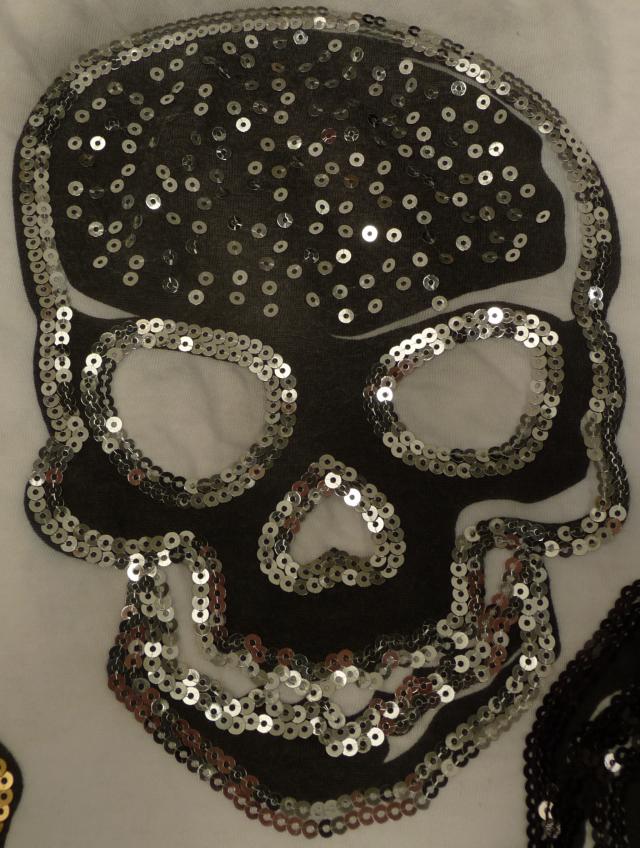 Calavera con estampado y lentejuelas arriba